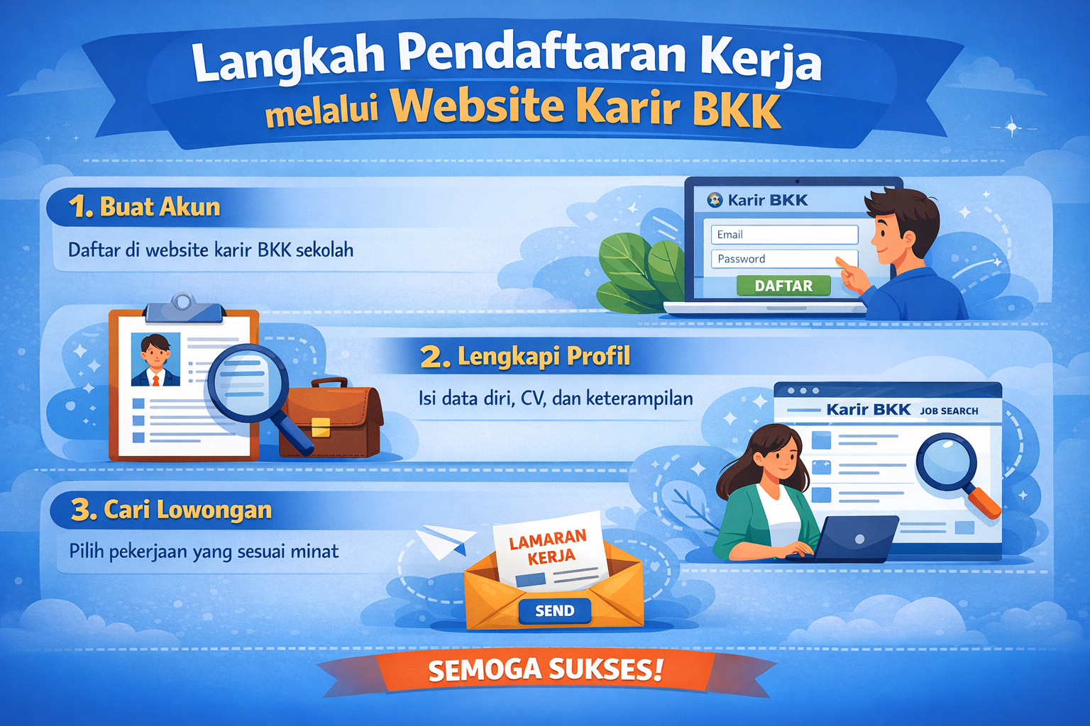 - Memberikan layanan kepada tamatan sesuai dengan tugas dan fungsi masing-masing seksi yang ada dalam BKK.